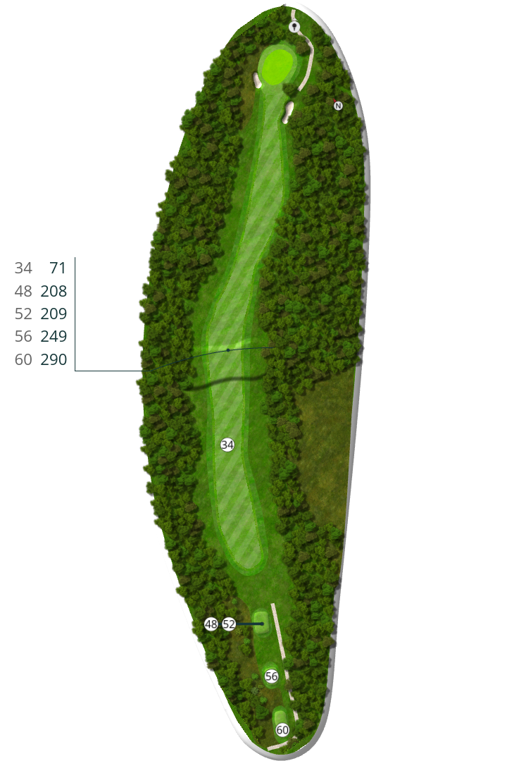 Giver tit problemer i drivet, selvom fairway er meget bred – bedste placering er venstre side, så der åbnes for et 2 slag lige ned ad fairway – green er forholdsvis flad men falder bagud og kun beskyttet af en lille bunker i venstre side samt en større bunker ca. 30 meter før green i højre. Klart bedst at lande indspillet venstre om flaget.